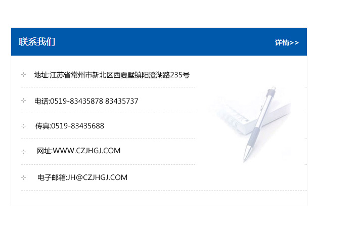地址:常州市新北區友邦商務大廈1幢16、17層  電話:0519-85101652  傳真:0519-85112595  郵編:213022  網址:www_cz-jiayue_cn.gdtxyz.com  郵箱:xiajifengaa@163.com